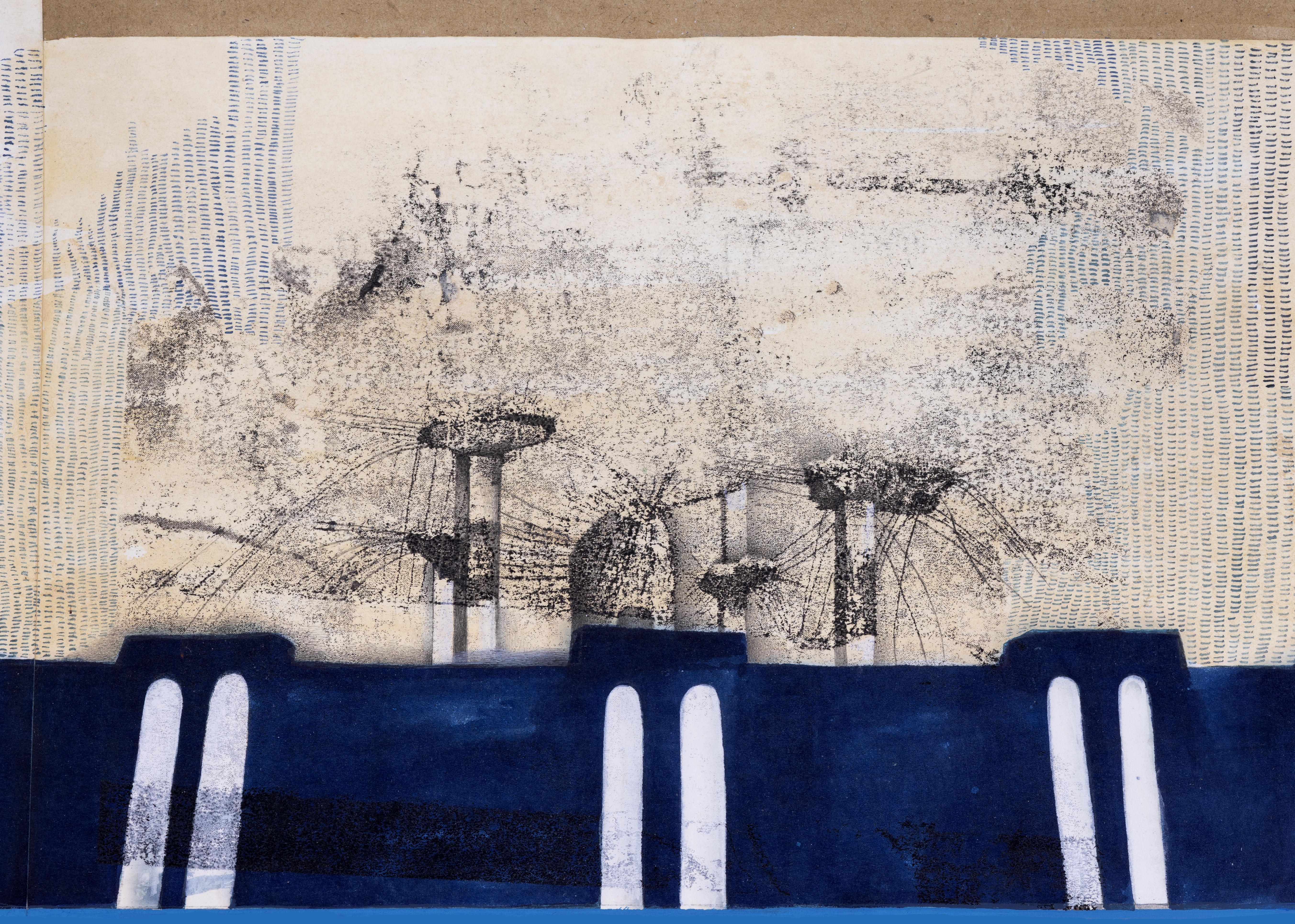 Inquire about this work Code # 4361 6.4x8.4 Cyanotype, guache and photo transfer on wasli | Available
