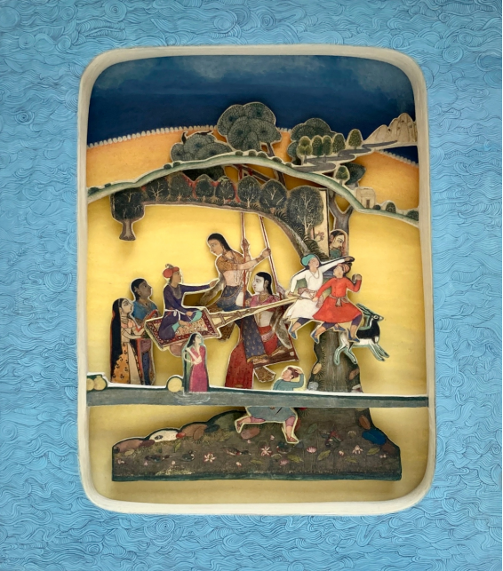 Inquire about this work Code # 4405 9.4x1.5x11.56 Original book (In the Realm of Gods and Kings: Arts of India) with gouache on the background and border | Available