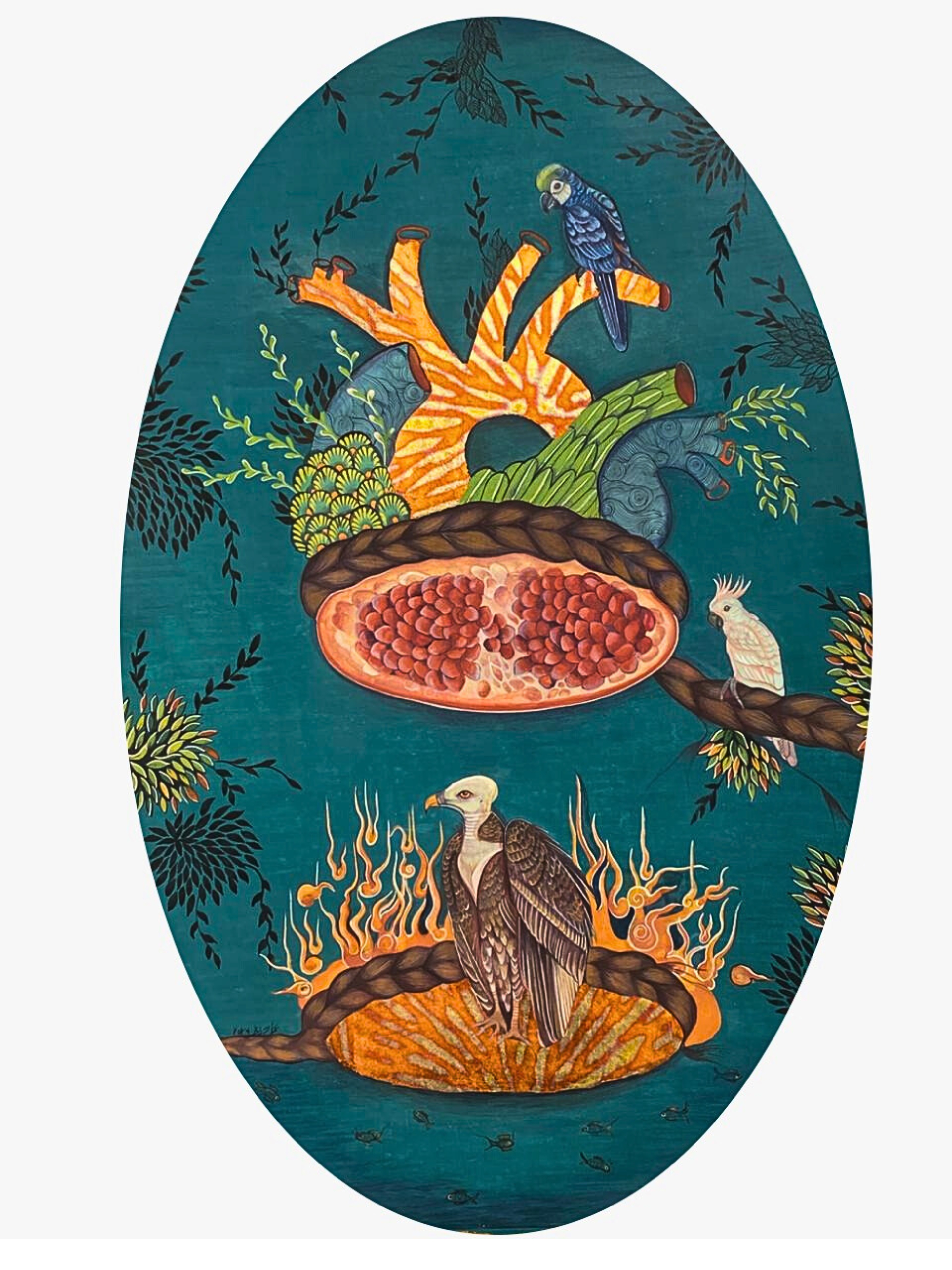 Inquire about this work Code # 4406 14x20 Gouache on acid free handmade wasli and variegated gold leaf. | Available