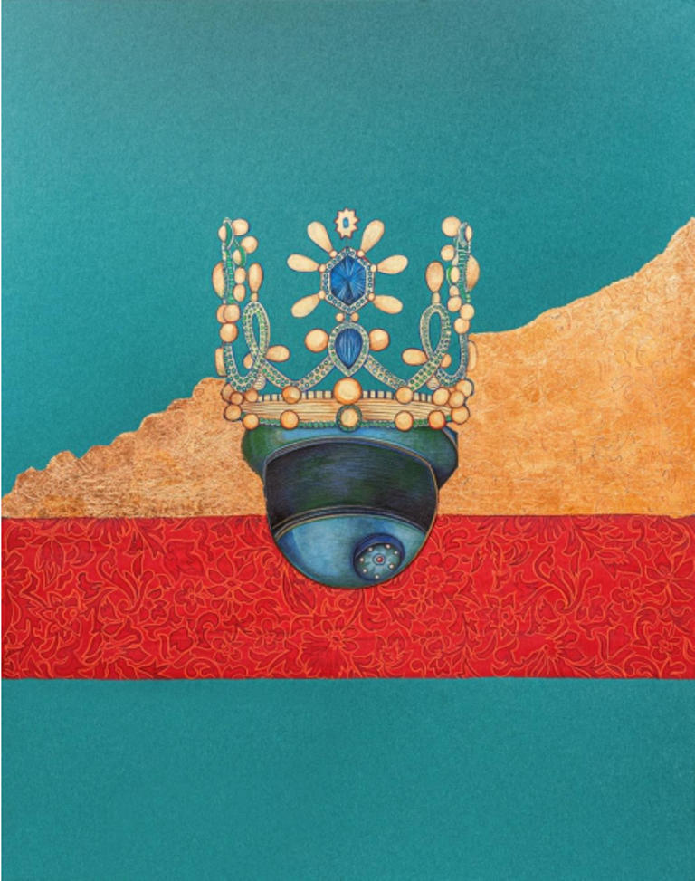 Inquire about this work Code # 4457 15x19 Gouache and Engraving on Metal Leaf (copper) applied to Museum Board (acid free) | Available
