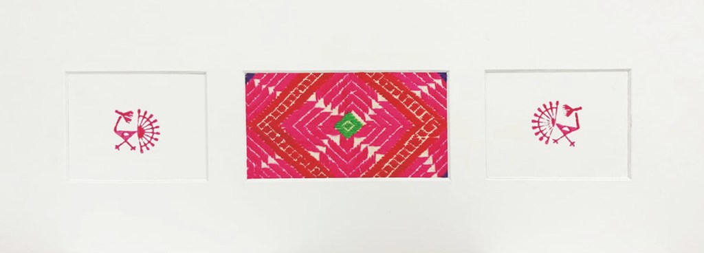 Inquire about this work Code # 4302 18x6.5 handmade embroider on white khaddar with floss silk & block print | Available