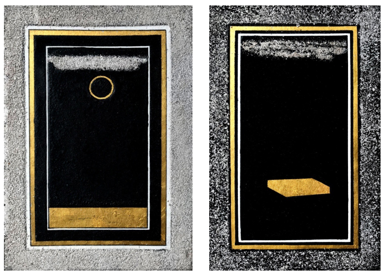 Inquire about this work Code # 4433 9x13 (Diptych) Gold, silver and charcoal powder on wasli paper | Available