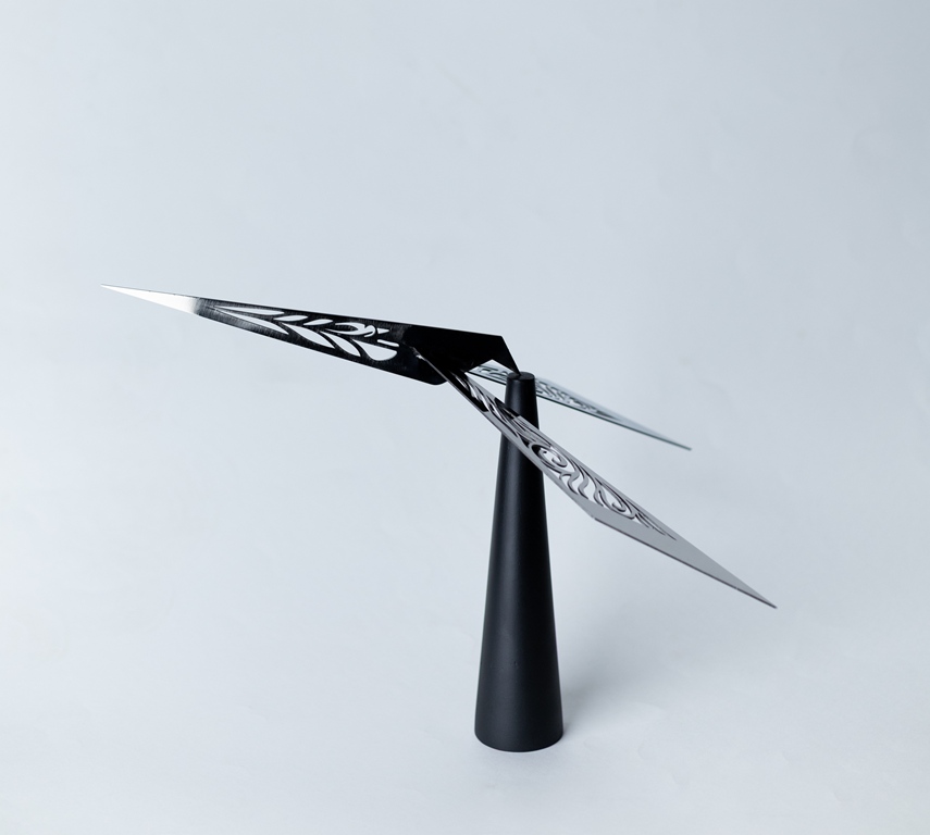 Laser cut steel and wooden base |